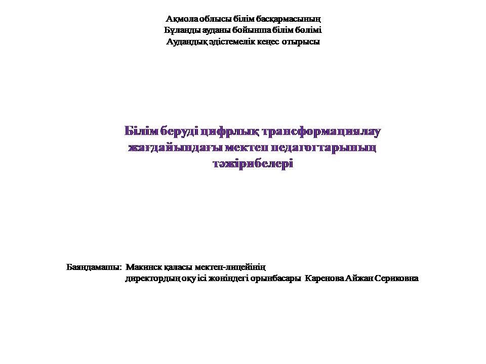 Білім беруді цифрлық трансформациялау жағдайындағы мектеп педагогтарының тәжірибелері