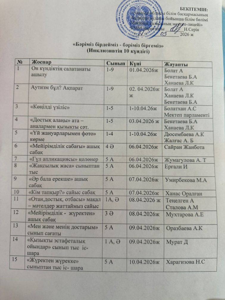 Инклюзивтің 10 күндігі