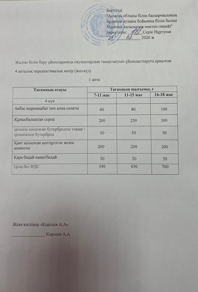 Коммунальное государственное учреждение «Школа-лицей города Макинск отдела образования по Буландынскому району управление образования Акмолинской области»