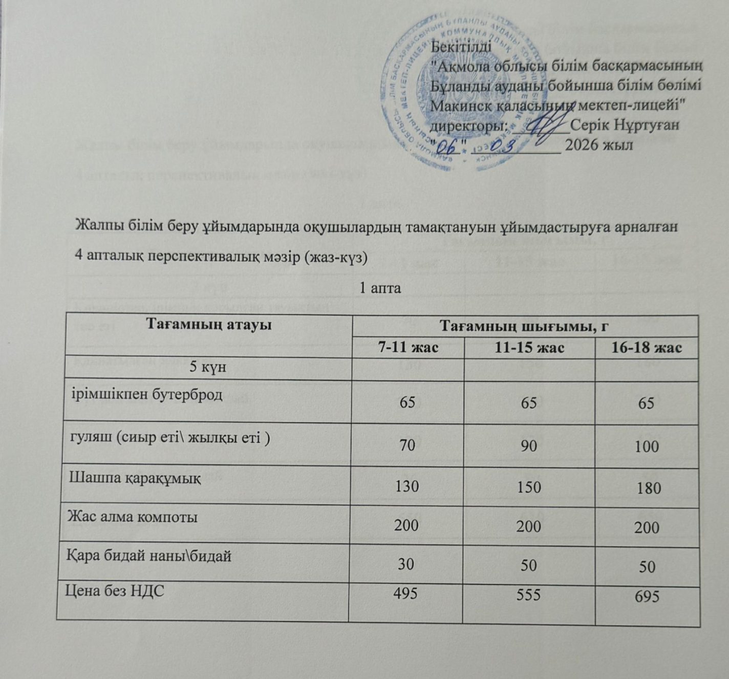 Ас мәзірі 06.03.2026