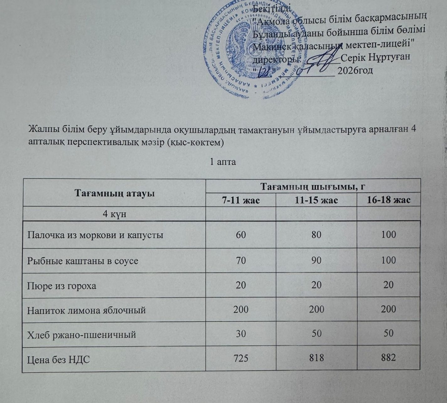 Коммунальное государственное учреждение «Школа-лицей города Макинск отдела образования по Буландынскому району управление образования Акмолинской области»