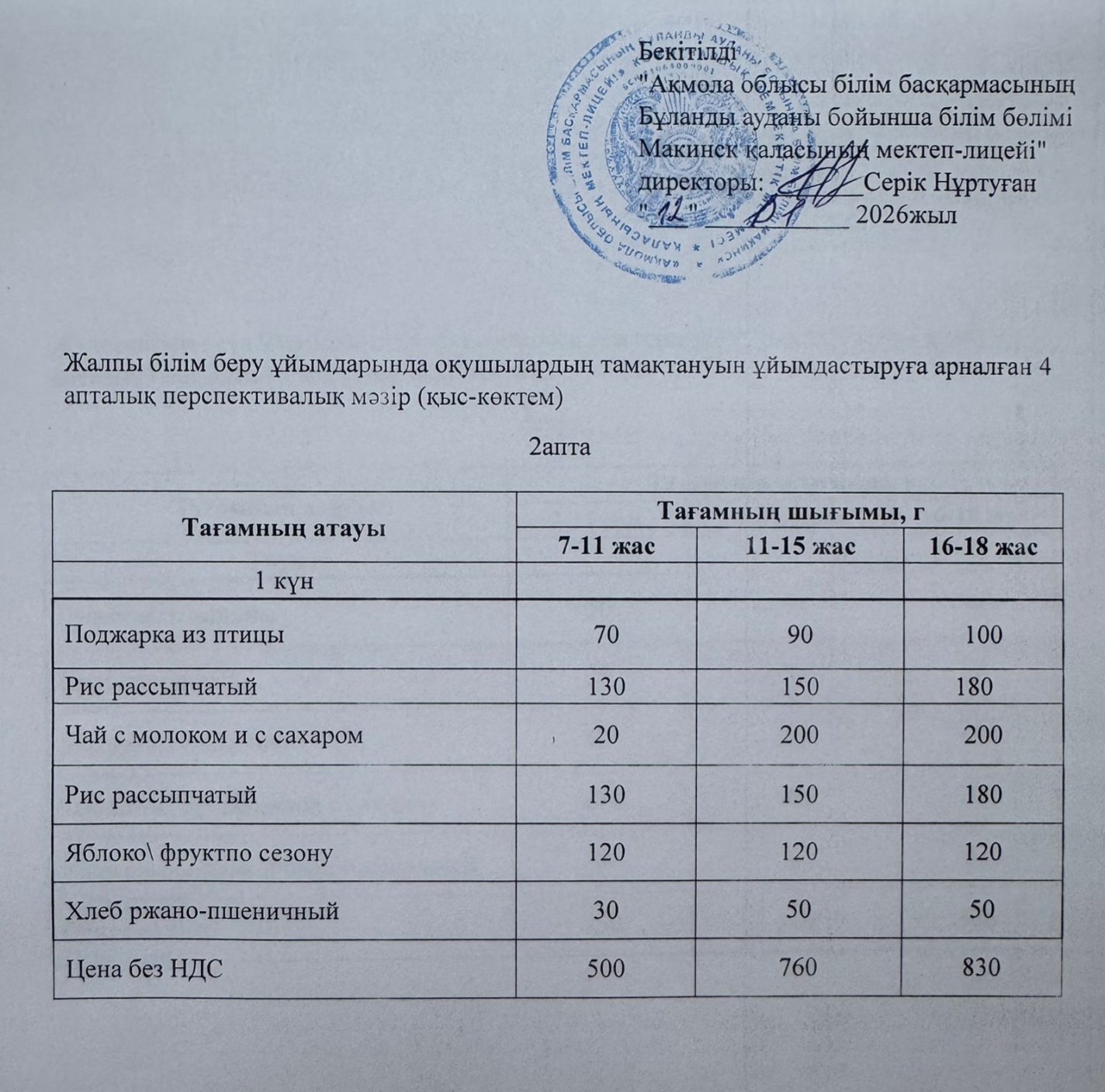 Ас мәзірі 12.01.2026
