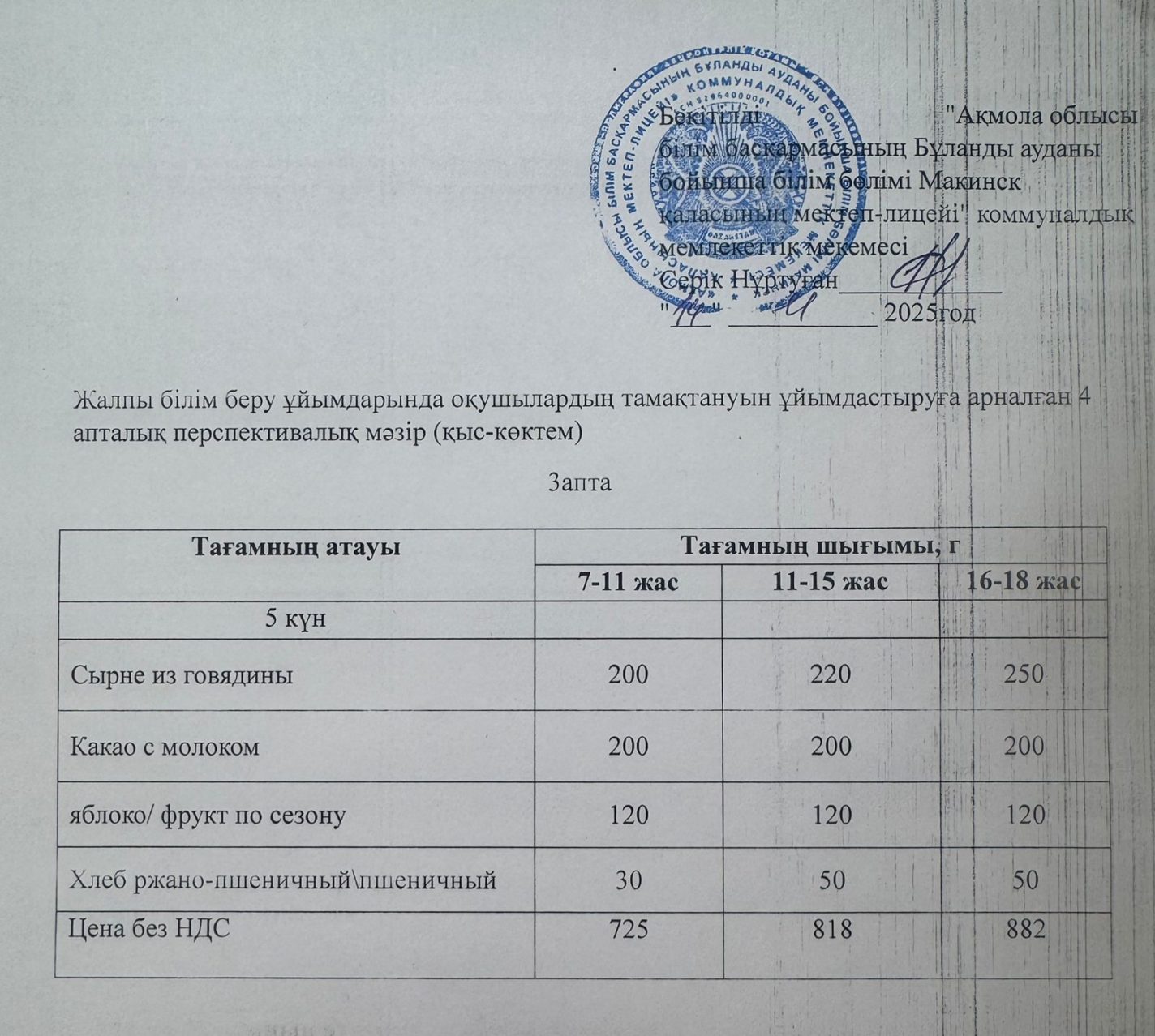 Коммунальное государственное учреждение «Школа-лицей города Макинск отдела образования по Буландынскому району управление образования Акмолинской области»
