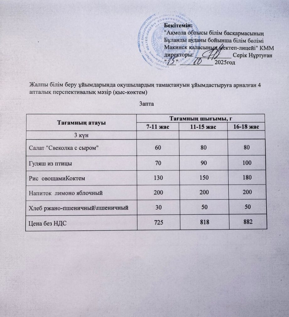 Коммунальное государственное учреждение «Школа-лицей города Макинск отдела образования по Буландынскому району управление образования Акмолинской области»