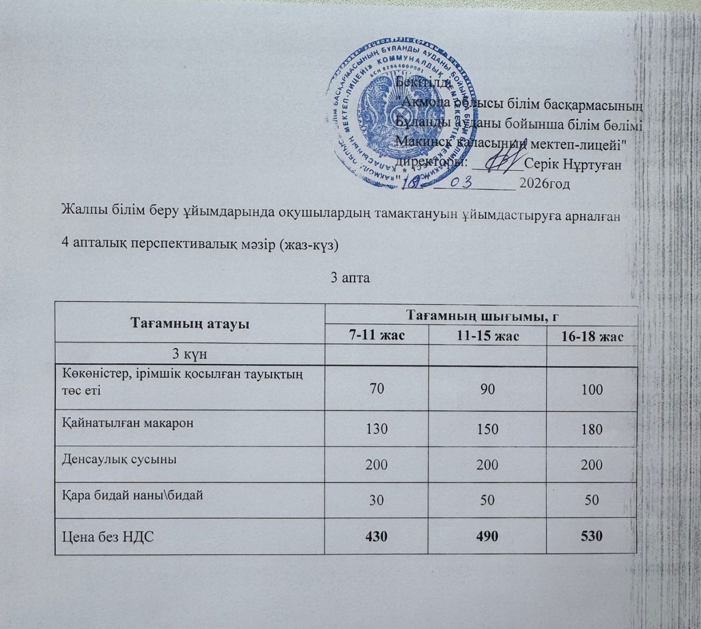 Коммунальное государственное учреждение «Школа-лицей города Макинск отдела образования по Буландынскому району управление образования Акмолинской области»