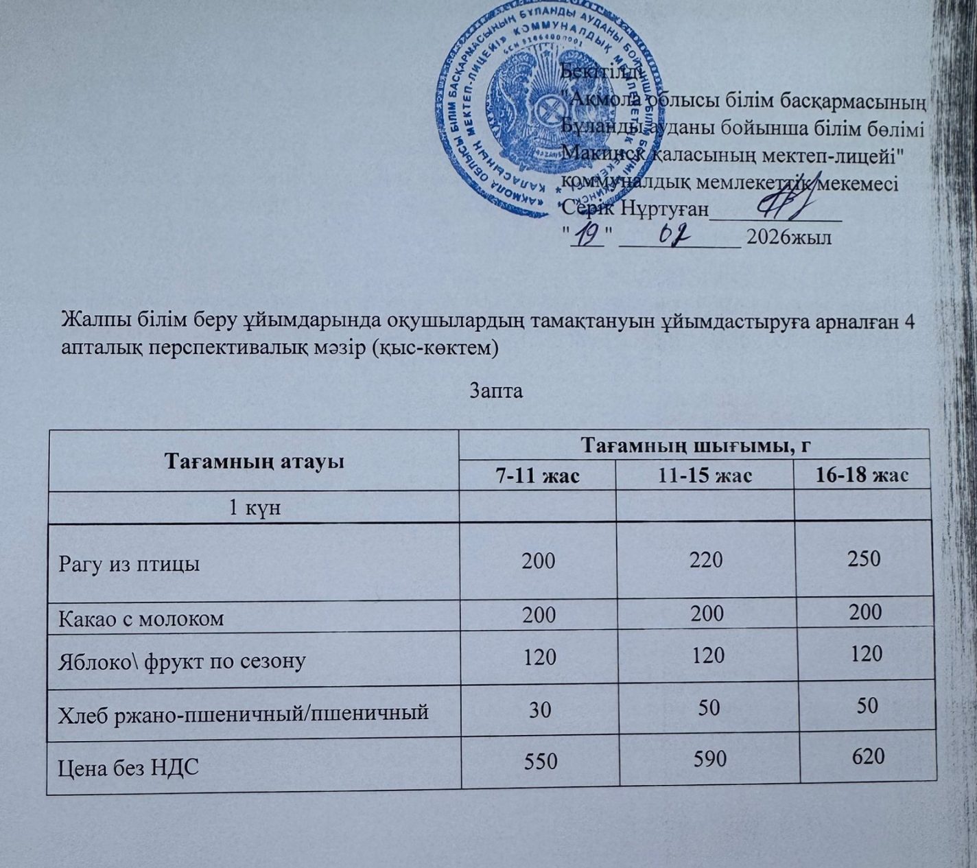 Ас мәзірі 19.01.2026