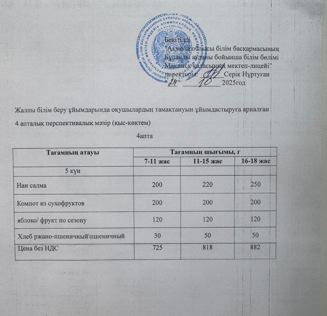 Коммунальное государственное учреждение «Школа-лицей города Макинск отдела образования по Буландынскому району управление образования Акмолинской области»