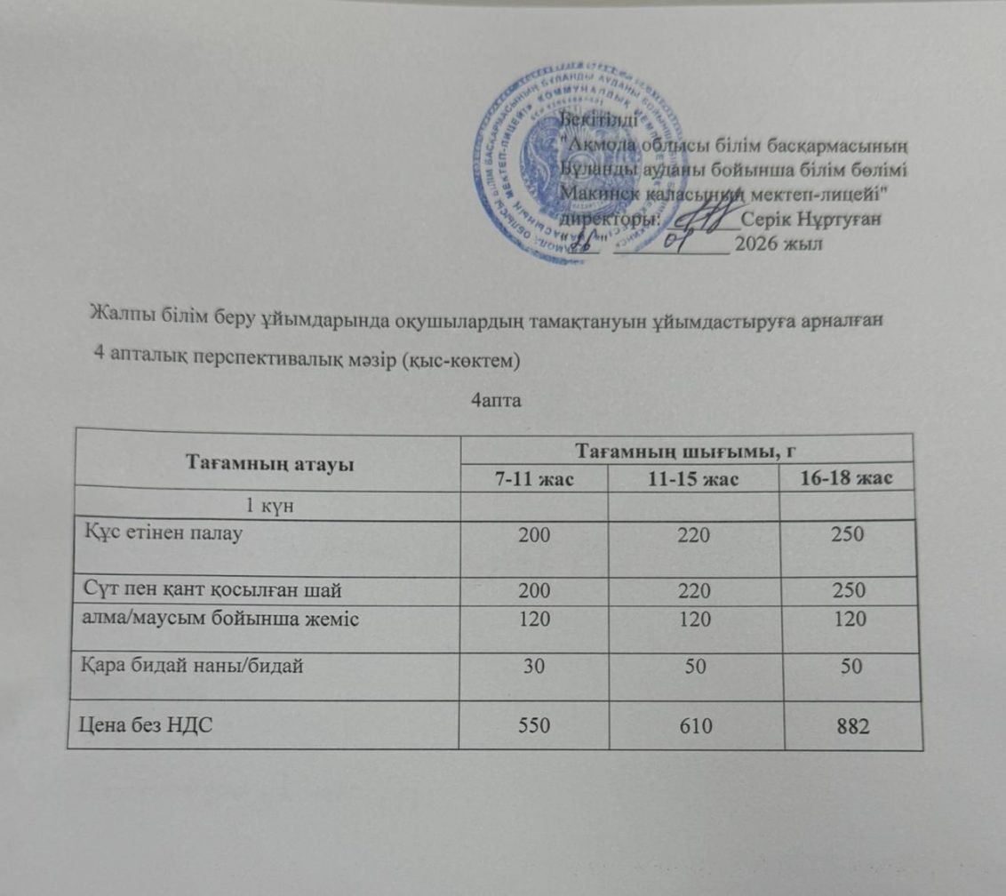 Ас мәзірі 26.01.2026