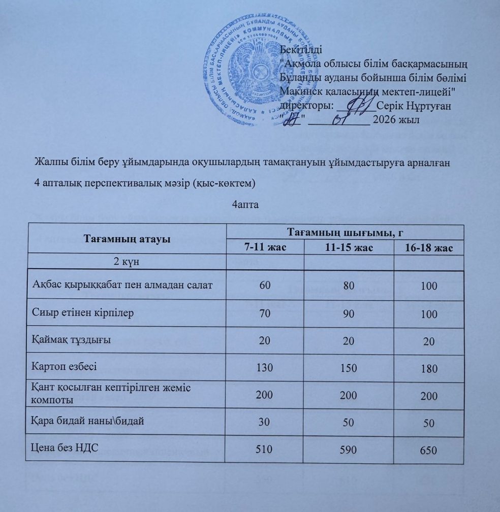 Ас мәзірі 27.01.2026