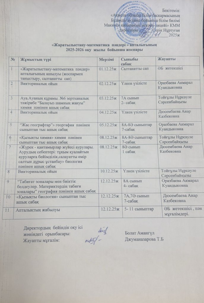Коммунальное государственное учреждение «Школа-лицей города Макинск отдела образования по Буландынскому району управление образования Акмолинской области»