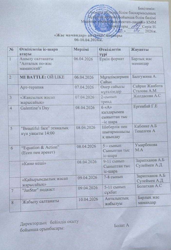 Коммунальное государственное учреждение «Школа-лицей города Макинск отдела образования по Буландынскому району управление образования Акмолинской области»